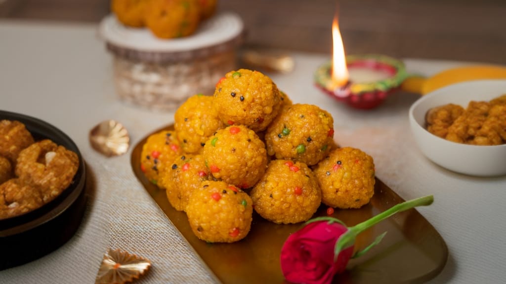 Nemji Sweets specializes in traditional Indian sweets like Motichoor Ladoo, Gulab Jamun, Rasmalai, Kaju Katli, Besan Ladoo, and more.
